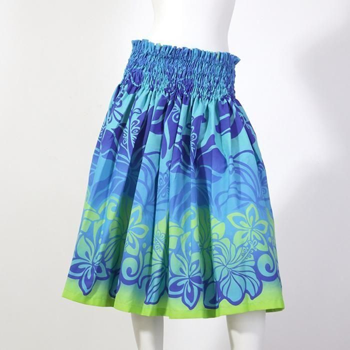 【オータムセール】パウスカート 水色 ハイビスカス・グラデーション柄 spau-rm-2955AQ 仕上がり丈約73cm 4本ゴム【既製品】