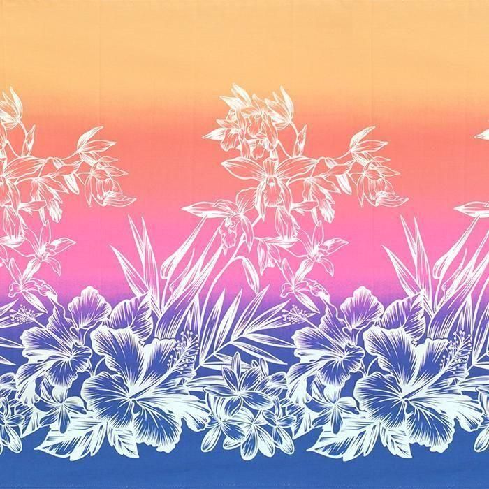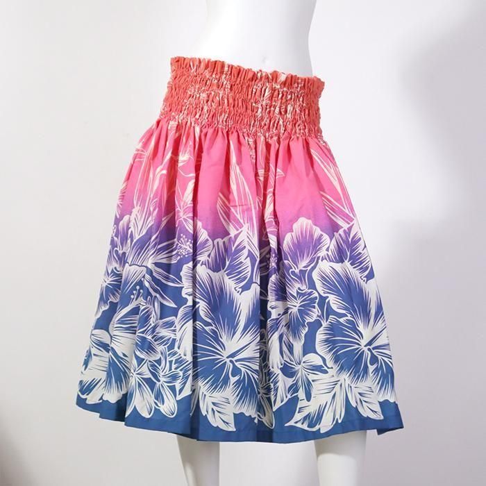 【オータムセール】パウスカート 青とピンク ハイビスカス・グラデーション柄 spau-rm-2958BLPi 仕上がり丈約73cm 4本ゴム【既製品】