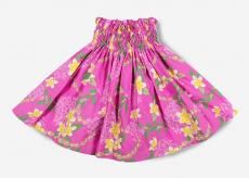 【アウトレット】【ケイキ(子供)用】 白のパウスカート プルメリア・キルト・レイ柄 otlt-kpau-2860WHWH 仕上がり丈約55cm 3本ゴム ロック仕上げ